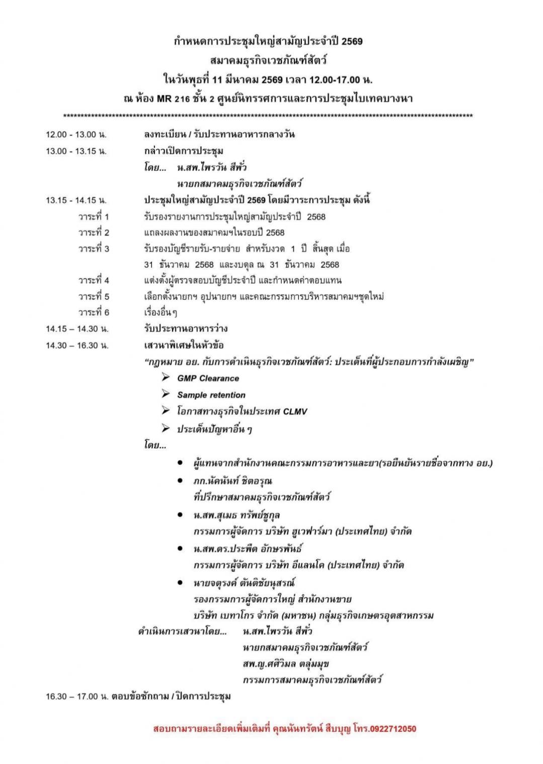 ประชุมใหญ่สามัญประจำปี 2569