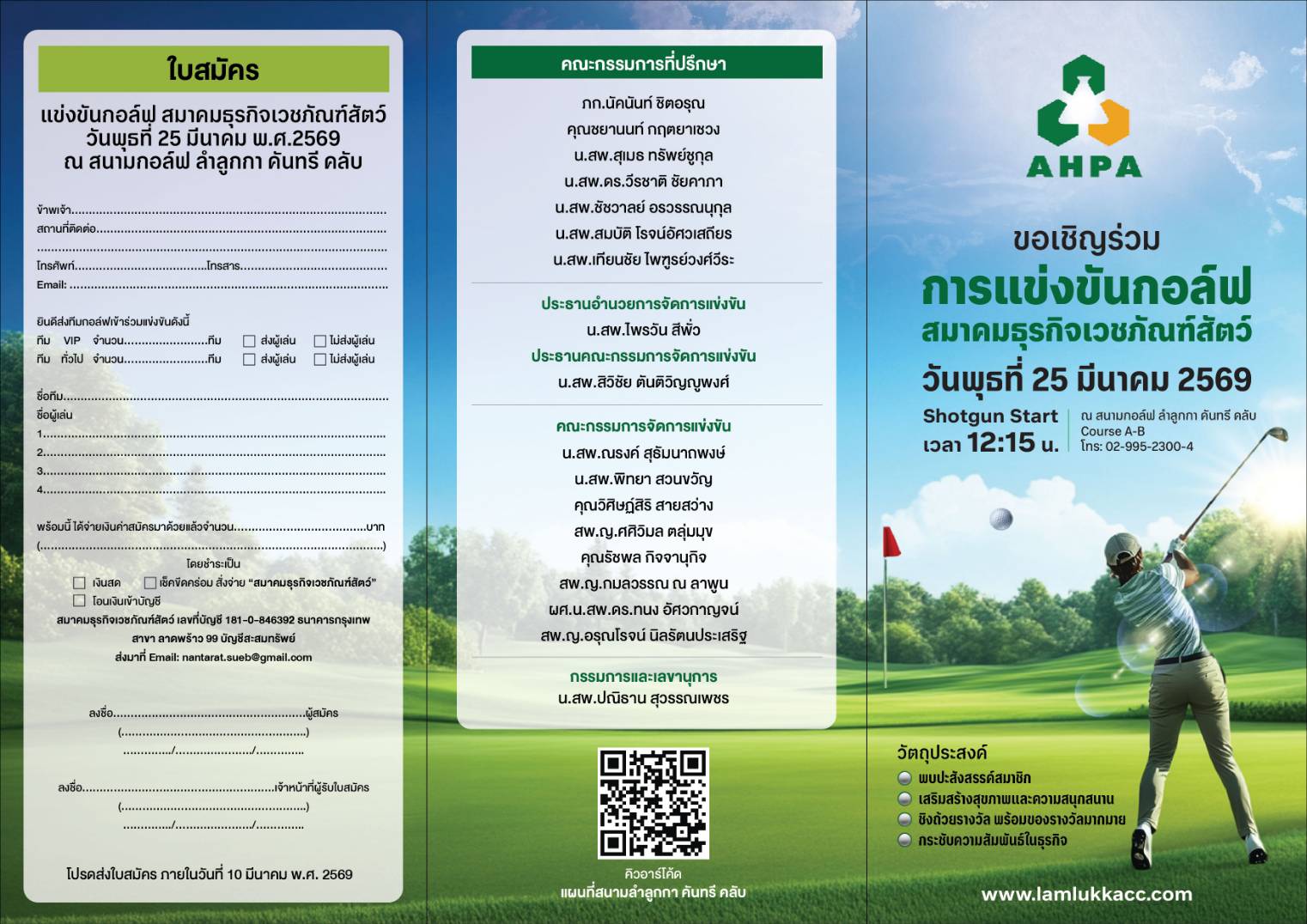 ขอเชิญร่วมการแข่งขันกอล์ฟสมาคมธุรกิจเวชภัณฑ์สัตว์